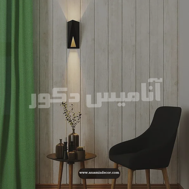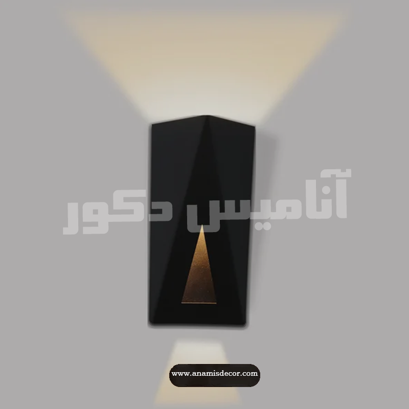 این چراغ با الهام از فرمهای سهضلعی طراحی شده و نور را از دو جهت (بالا و پایین) با زاویه ۱۲۰ درجه پخش میکند. پرتاب نور زاویهدار جلوهای هنرمندانه روی دیوار ایجاد میکند و فضا را گرم و جذاب میسازد.