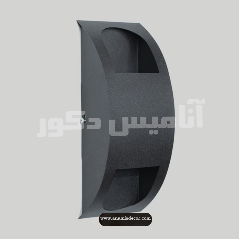 این چراغ با فرم مستطیلی کشیده و لبههای خمیده، جلوهای مجسمهگونه روی دیوار ایجاد میکند. برشهای بالایی و پایینی علاوه بر زیبایی، مسیر خروج نور را تعریف کرده و محصول را شبیه یک المان دکوراتیو هنری نمایش میدهند.